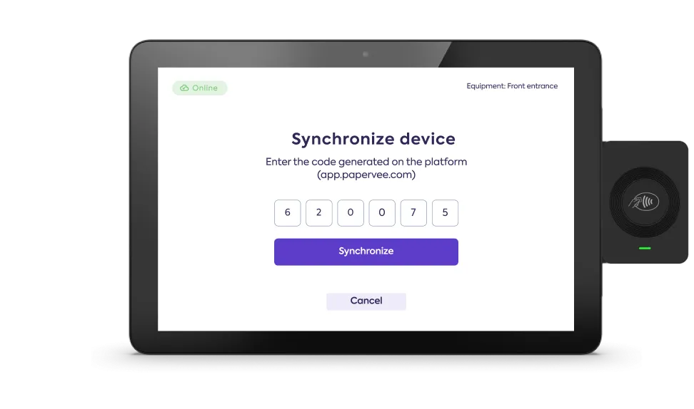 Once your Papervee Hub is powered up, you will need to enter the sync code displayed in your account to sync the device to the platform.